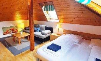 A free parking lot is located directly at the house. A covered storage for bicycles is also available. Bicycles can be rented cheaply from us or in the neighboring village