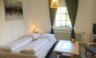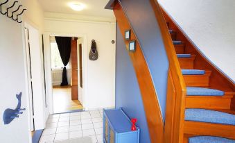The typical north German brick house is located on a large garden plot right by the sea or Dike. The available rooms contain everything that is needed for your pleasant vacation: bathroom with shower, a cozy and bright living room (with a fold-out, comfortable spring-core sofa bed) and a functional kitchen where meals can be prepared and eaten. As an alternative, there is a conservatory directly adjacent to the kitchen, where you can eat comfortably, drink tea or simply enjoy nature. All rooms are equipped with tiles, parquet or laminate flooring.