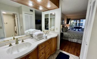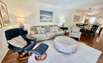 Recently renovated St. Augustine beach vacation rental is a gold rated two bedroom / two bath ocean view condo accommodating 4 guests with southern exposure and views of the pool & ocean! The kitchen has been updated with new cabinets and counters. The dining area seats 4 at the table + 2 bar stools. The living room has plenty of comfortable seating with a flat screen TV. The master bedroom has a king bed and a flat screen TV. The updated master bathroom has a brand-new, beautifully renovated walk-in shower. The guest bedroom has two queen beds and a flat screen TV. Patio offers comfortable seating where you can enjoy your morning coffee overlooking the pool area. Easy access to the beach and the pool/hot tub area.