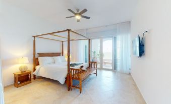 Immerse yourself in Cabarete's beachfront bliss at Beach Palace! Picture this: waking up to the gentle rhythm of the Caribbean Sea, stepping onto your private balcony, and being mesmerized by the endless ocean views. This stunning remodeled beachfront apartment at Beach Palace in Cabarete offers the perfect blend of modern luxury and island charm, making it the ultimate escape for up to 6 guests. Step inside and be greeted by: A modern-Caribbean mix of furniture: Think sleek lines and pops of vibrant color, creating a warm and inviting atmosphere. A fully equipped kitchen: Whip up delicious meals with ease, featuring all the appliances and cookware you'll need. 3 spacious bedrooms and 3 immaculate bathrooms: Everyone gets their own haven of comfort and privacy. Entertainment for everyone: Relax in the living room and master bedroom with TVs, or stay connected with high-speed internet. An unbeatable balcony: Soak up the sun, savor alfresco meals, and lose yourself in the breathtaking ocean views. But the magic doesn't stop there: Beachfront bliss: Descend the stairs from your terrace and find yourself mere steps from the soft sand and sparkling turquoise waters. Paradise awaits! Restaurant heaven: Craving fresh seafood, local specialties, or international cuisine? You'll be spoilt for choice with a plethora of restaurants right at your doorstep. Imagine: Sun-kissed days spent swimming, surfing, kiteboarding, or simply lounging on the beach. Breezy evenings grilling fresh seafood on the balcony while sipping cocktails under the starlit sky. Family movie nights or game nights in the cozy living room, followed by deep sleeps lulled by the ocean's whispers. Beach Palace is more than just an apartment; it's an invitation to experience the true essence of Cabarete. Book your stay today and create memories that will last a lifetime! Details: - King Bed in Master Bedroom - Queen Bed in Bedroom #2 - Queen Bed in Bedroom #3 - 24/7 Security. - High Speed internet. - Fire TV - Walking distance to most attractions and restaurants in the heart of Cabarete!About pets:No pets allowed.About checkOut:Check out before 11:00 AM.About children:Children allowed: ages 0-17.About checkIn:Check in after 3:00 PM.About smoking:Smoking is not permitted.About minBookingAge:Minimum age to rent: 25.About events:No events allowed.