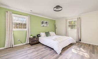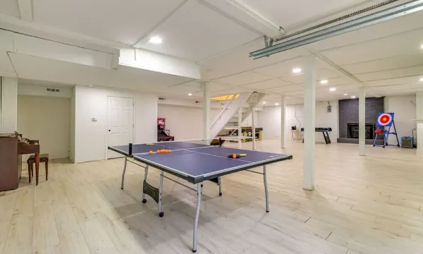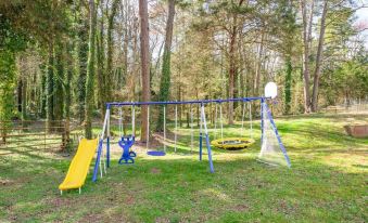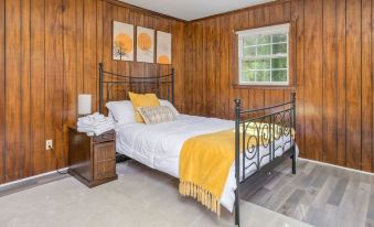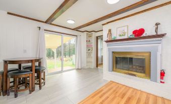 5-Acre Property | Free WiFi | 1,900 Sq Ft Bedroom 1: King Bed | Bedroom 2: Queen Bed | Bedroom 3: Queen Bed | Living Room: 2 Full Futons and additional mattresses in TV Room. HOME FEATURES: Smart TVs, dining table, ceiling fans, fireplace, high chair, outdoor dining area, garden, gas grill KITCHEN: Refrigerator, stove/oven, coffee maker, microwave, dishwasher, dishware & flatware GENERAL: Washer & dryer, towels, linens, complimentary toiletries, central air conditioning/heat BASEMENT : 1300 Sq Ft basement Game Room with Air Hockey, Table Tennis, Mechanical Guitar and Axe Game FAQ: No access to Barn/sheds ACCESSIBILITY: 2 steps required for access PARKING: Garage (2 vehicles), driveway (2 vehicles), RV/trailer parking in the back of the house