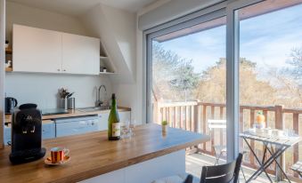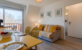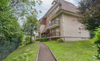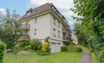 Residence "Eurydice", 3 storeys, surrounded by trees. In the resort 800 m from the centre of Cabourg, 150 m from the sea. In the house: lift. Public parking on the road. Shop 650 m, supermarket 2.8 km, restaurant 650 m, bus stop "Hôtel de Ville" 1.1 km, sandy beach 150 m. Sports harbour 150 m. Please note: no lift. Access to the property via several steps. 2-room apartment 38 m2 on 2nd floor, north-east facing position. Living/dining room with 1 double sofabed (140 cm, length 190 cm), TV (flat screen). Exit to the balcony. 1 room with 1 pull-out bed (2 x 90 cm, length 190 cm). Kitchenette (oven, dishwasher, 4 ceramic glass hob hotplates, toaster, kettle, microwave, freezer, electric coffee machine, Capsules for coffee machine (L'Or Barista) extra) with bar. Shower, sep. WC. Electric heating. Balcony 3 m2. Balcony furniture. Facilities: washing machine, iron, children's high chair, baby cot for up to 3 year olds. Internet (WiFi, free). Please note: smoke alarm, no lift. Offer by a private individual according to Art. 155, IV of CGI.