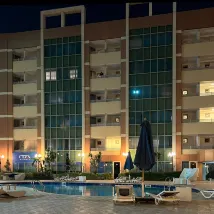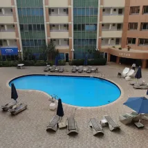 Отель состоит из нескольких зданий, с двумя бассейнами и большим баром посередине, с комфортной обстановкой. Стандарты обслуживания стандартные, персонал дружелюбный. Номер в отеле чистый и опрятный. Хотя оформление немного старое, общее впечатление хорошее.