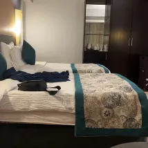 Остановившись возле площади Тахрир в Каире, я отправился отдохнуть в отель недалеко от аэропорта. Было слишком холодно, чтобы заходить в бассейн, а спа, сауна, массаж и т. д. в настоящее время не работали. Завтрак утром был съедобным, но у меня было расстройство желудка, и я едва мог его съесть. В номере не хватало полотенец.