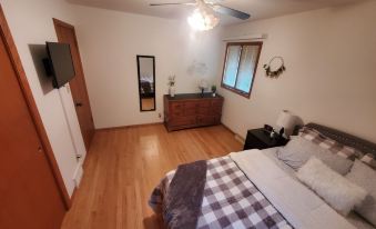 Experience tranquility in this spacious home just steps away from Lake Michigan and local parks. Tucked away in a peaceful neighborhood yet close to dining and shopping, it boasts a beautiful fenced backyard with a 10-foot deep pool. Inside, enjoy smart TVs in every room with free access to Disney+ and Hulu, and indulge in the fully stocked coffee and espresso bar for the ultimate relaxation.