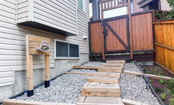 Enter through the backyard gate and walk down the steps where you will find your garden suite.