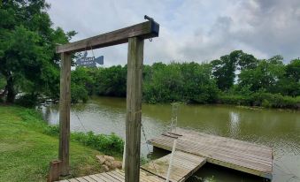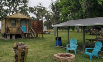 The property offers a tiny cabin "River Bunkie" that sleeps 2. There are 2 R.V. sites (1) 30 amp, (1) 50 amp and multiple 110v hookups for a travel trailer. Amenities include carport/ shade cover, picnic table, BBQ pit, fire pit and a 300W fishing light for night fishing. We also have a kayak for you and your family to enjoy.About pets:Pets allowed: less than 50 lbs per pet (limit one pet total).About checkOut:Check out before 11:00 AM.About children:Children allowed: ages 0-17.About customRules:Have fun and relax! ⛱️ 🎣 🏝🏕🐟.Please only use firewood that is provided next to fire ring. Wood for cooking may be provided near bbq pit..About checkIn:Check in after 2:00 PM.About smoking:Smoking is not permitted.About minBookingAge:Minimum age to rent: 18.About events:No events allowed.