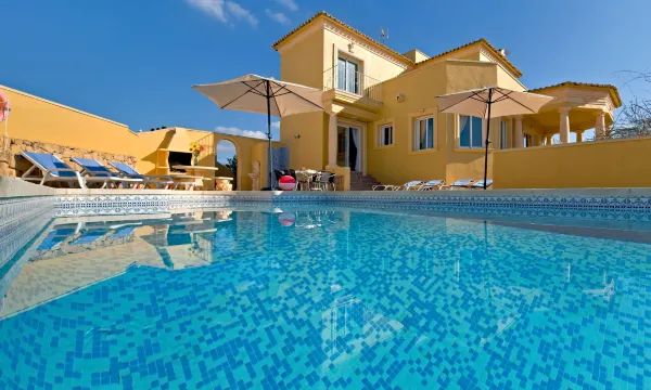 Villa "Acuario". 3.6 km from the centre of Calpe, 25 km from the centre of Benidorm, 60 km from the centre of Alicante, 800 m from the sea, 1.5 km from the beach. Private: property 819 m2 (fenced), wildlife garden and trees, swimming pool (8 x 4 m, depth 120 - 150 cm, seasonal availability: 01.Jan. - 31.Dec.). Outdoor shower, parking. Grocery 800 m, supermarket 1 km, bus stop 800 m, sandy beach "Playa de la Fossa" 1.6 km. Nearby attractions: Terra Mítica 35 km, Aqualandia 25 km, Benidorm Palace 25 km. Hiking paths: Peñon de Ifach 3 km. "Villa Acuario", 6-room villa 210 m2. Spacious and bright, comfortable and beautiful furnishings: open living/dining room with digital TV, international TV channels, air conditioning and forced-air heating. Exit to the terrace. 2 rooms, each room with 2 beds, air conditioning and forced-air heating. 1 room with 1 french bed (150 cm, length 190 cm), air conditioning and forced-air heating. Kitchen (oven, dishwasher, 4 ceramic glass hob hotplates, toaster, kettle, microwave, electric coffee machine). Bath/WC, shower/WC. Upper floor: 1 room with 2 beds (90 cm, length 190 cm), bath/bidet/WC, air conditioning and forced-air heating. 1 room with 2 beds (90 cm, length 190 cm), air conditioning and forced-air heating. Shower/WC. Large terrace. Terrace furniture, barbecue, deck chairs. View of the resort and the town. Facilities: washing machine, iron, children's high chair, baby cot for up to 2 year olds, hair dryer. Internet (WiFi, free). Parking. Suitable for families. Maximum 2 pets/ dogs allowed. AT-456322-A ESFCTU00000302900049331200000000000000000AT-456322-A0