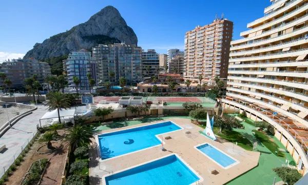 Playa de la Fossa: Apartment block "Voramar", 15 storeys. 1.8 km from the centre of Calpe, in a busy, sunny position, 10 m from the sea, from the beach, direct access to the beach. For shared use: property (fenced), garden, 3 swimming pools (seasonal availability: 01.May. - 31.Oct.). Children's pool, outdoor shower, terrace. In the house: lift. Supermarket, restaurant 50 m, bar 100 m, pub garden 10 m, bus stop, sandy beach "Playa de la Fossa" 10 m. Sports harbour, marina 350 m, golf course (9 hole) 10.5 km, surf school, sailing school. Nearby attractions: Aqualandia, Terra Mítica, Mundomar, Terra Natura, Benidorm Palace (Benidorm). The owner does not accept any youth groups. Residence with electric gates. "Voramar", 4-room apartment 108 m2 on 6th floor. Comfortable and beautiful furnishings: living/dining room 20 m2 with satellite TV, digital TV, air conditioning and forced-air heating. Exit to the terrace. 1 room with 1 french bed (150 cm, length 190 cm), shower/WC, air conditioning and forced-air heating. Exit to the terrace. 2 rooms, each room with 2 beds (90 cm, length 190 cm), air conditioning and forced-air heating. Small kitchen (oven, 4 ceramic glass hob hotplates, kettle, microwave, freezer, electric coffee machine). Shower/WC. Large terrace 84 m2. Terrace furniture, deck chairs. Panoramic view of the sea and the countryside. Facilities: washing machine, iron, hair dryer. Internet (WiFi, free). Parking space n 11. Edif. Zafiro (1 car). AT-503918-A ESFCTU00000302900034205400000000000000000AT-503918-A8