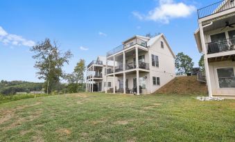 Brand new place built at Deerfield. Very nice community with lots of residents nearby. Parking was limited; we fit two vehicles easily, but the neighbors took the 3rd parking space. House had all the kitchen amenities needed, had two separate interior areas for watching movies or playing games and had three separate exterior areas for enjoying the morning coffees or evening cocktails. Bedrooms were spacious with a bathroom on each floor. We had 6 adults and were very comfortable. There was sleeping space for more than 6 adults, but i feel it might have been more crowded if we filled up all thr sleeping spaces. House had access to movies and other TV options plus other non-electronic games for when you are not enjoying the lake, when it's raining, or just waiting for dinner to cook.