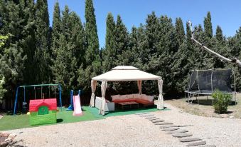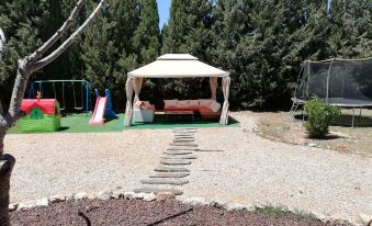 In the surroundings of the natural park of the lagoons of Ruidera is the chalet Alavesa. The house is located outside the town center. The plot is fully fenced and independent where there is the house with outdoor terrace, pool and outdoor playground. It has a living room with fireplace, four bedrooms, three bathrooms and a fully equipped kitchen. The living room has a dining area for 14 people and a rest area next to the fireplace. In the kitchen bar we have a beer tap, there is also a cold room and an additional fridge. It has a dishwasher and washing machine. Outside the house is a very large porch with barbecue, all terrace furniture, television (depending on season) and playground with a table football and target. The stereo is heard both inside and outside. The pool is fully fenced, a chill out outside for spring, summer and autumn that makes the stay more enjoyable along with the trampoline and a playground for the little ones. Everything is on the fully fenced plot with large garden areas and with a very large indoor parking area. As a point of interest is the proximity to only 3 kilometers from Tomelloso where you can make last minute purchases as well as all services such as restaurants, cinemas or leisure centers. You can visit the wineries of Tomelloso offering their wines, visits to the Portals where a variety of activities are offered. Another visit that cannot be missed is the Marquinetti Restaurant, famous for its pizzas nationwide.About pets:Pets allowed.About checkOut:Check out before 1:00 PM.About children:Children allowed: ages 0-17.About checkIn:Check in after 12:30 PM.About smoking:Smoking allowed: in designated areas.About events:No events allowed.