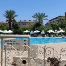 Приехали в отель около 4 утра. Ночью, на ресепшн работает турок, который не говорит по русски совсем. Заселил на последний этаж (три женщины), в очень маленький номер, а котором даже одной тесно. Долго пытались объяснить ему через переводчик, что нам нужен другой номер. В итоге дождались утро и пошли на ресепшн, там поменяли номер. В номере всё работало. Вид на бассейн. Полотенца меняют каждый день, уборка тоже, в ванной дозатор для мыла и гель душа. Шампуни нет. В холодильнике полутора литра воды, две минералки по 250 мл., кола, Фанта. Кстати, слышимости в соседних номерах практически нет. Мебель уже подгулявшая, но в принципе сойдёт. Еда супер, фруктов много, овощей много, рыба каждый день, курица, индейка, говядина. Вообще еда супер!!! Обслуживающий персонал работает быстро, столов всегда хватает, скатерти на столах! Алкоголь на любой вкус до 23.00, даже шампанское есть. Бар на пляже есть, туалет есть, пляж большой, мест полно. На пляже вино, пиво, кофе, чай, горячий шоколад, вода, кола, спрайт, фанта, минеральная вода. Еда тоже есть, мороженое в 15.00 и на пляже и в отеле. Интернет бесплатный и в отели и на пляже, сейф бесплатно, полотенца пляжные под залог 10 долларов, при выезде возвращают доллары. Анимация слабовата, но каждый день, всё своими силами, никого не приглашали, но этого было достаточно. В общем отель достойный! Отель находится в центре поселка, всё необходимое, магазины, аптеки сразу через дорогу.Рекомендую!!! Крепкая четверка. Вернулись бы? Однозначно да!!!