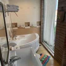 Ночевали в Вип2 на 7 этаже. Во-первых, кондиционер работал шумно и плохо охлаждал комнату. Ванная комната не приватная, потому что в ней большое окно… Душ в ванной без занавески… Очень простой обед! А люди, наоборот, очень хорошие.