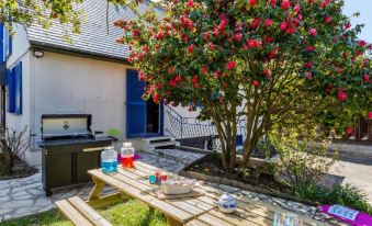 Beautiful terraced house "La Perle", 2 storeys, renovated in 2020. In the centre of Cancale, residential area (villas), excellent location: right in the centre but still quiet, traffic calmed area, 1.5 km from the sea, 2.9 km from the beach. Private: beautiful, well-kept garden 500 m2 (fenced). Table tennis. In the house: table tennis, billiard table, playroom. Parking on the premises. Shop 1 km, supermarket 1 km, shopping centre 1 km, restaurant 500 m, bakery 350 m, café 400 m, bus stop 450 m, railway station "La Gouesnière" 8 km, sandy beach "Port mer" 2.9 km. Sports harbour 2 km, riding stable 3.5 km. Nearby attractions: Saint Malo Intramuros 14 km, Dinan 35 km, Dinard 20 km, Le grand aquarium de St Malo 18 km, Le mont St Michel 48 km, Dol de Bretagne 21 km. 8-room house 240 m2 on 2 levels. Fully renovated in 2020, comfortable and tasteful furnishings: large living/dining room with open-hearth fireplace (only for decoration), TV (flat screen), hi-fi system. Exit to the garden. 1 room with 1 french bed (1 x 140 cm, length 190 cm). Exit to the garden. 1 room with 2 beds (90 cm, length 190 cm). Walk-through room with 2 beds (90 cm, length 190 cm), separate WC. Large kitchen (oven, dishwasher, 4 gas rings, toaster, microwave, freezer, electric coffee machine). Exit to the garden. 2 showers, sep. WC. Upper floor: large lounge with bar and TV (flat screen), Home cinema. 2 rooms with Dressing room, each room with 1 french bed (1 x 140 cm, length 190 cm). 1 room with 2 beds (90 cm, length 190 cm). Bathroom, sep. WC, double hand-basin. Electric heating. Large garden, lawn. Terrace furniture, barbecue. Facilities: washing machine, dryer, children's high chair, baby cot, hair dryer. Internet (WiFi, free). Parking (fenced 3 cars). Please note: suitable for families. Non-smokers only. Smoke alarm. Offer by a private individual according to Art. 155, IV of CGI.