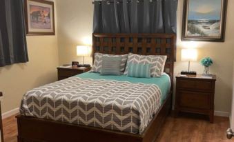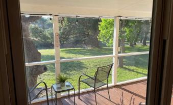Relax with the whole family at this peaceful place to stay. Enjoy the wild life and cocktails on the front screened in porch. Charcoal BBQ. Eat outside on the back patio with dining table and chairs. Enjoy roasting marshmallows at the outside firepit (bring wood). Play outdoor games; or just relax. Enjoy two bedrooms, two baths, and 2 walk in closets. Third bed is queen sleeper sofa. Washer and dryer available. Three WiFi ready TV's. Basic cable on the den TV. High speed internet. Fully furnished kitchen.