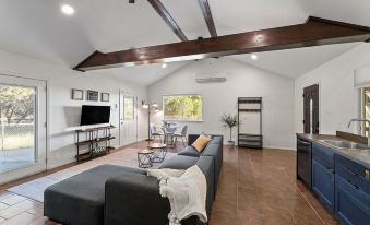 Studio Rosé is a modern farmhouse in Canyon Lake with peaceful vibes and sunset views. Relax in the private hot tub on the porch, wine in hand, while watching the sky glow over the Hill Country. An old vineyard adds charm and open views, with a few grapevines still hanging on. Surrounded by oaks and just minutes from boat ramps, swim beaches, and marinas — this is your cozy, quiet escape in nature.
