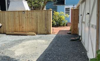 Parking is available in the back driveway behind the home. The driveway may fit 1-2 cars and/or a golf cart rental. There is a plug on the side of the shed to charge golf cart batteries. There is also free street parking in front of the home.