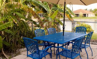 Relax in our just remodeled vacation house in a quiet neighborhood. Enjoy private year around heated oversized blue water pool with swim-up table. Use poolside wet bar and fridge at your convenience. Adore amazing sunsets from custom built dock. Chill and relax under breezy palms. Admire tropical atmosphere.