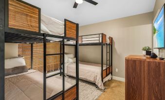 The third bedroom houses two twin-over-twin bunk beds and two trundle beds sleeping a total of 6 beds. Also the bedroom has a dresser, smart TV and closet.