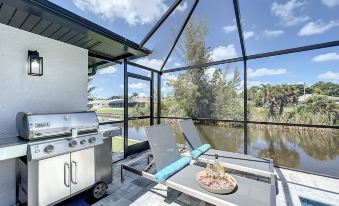 The lanai offers fantastic views of the canal with access to the Gulf of Mexico. You can enjoy the saltwater heated pool and lounge beds. It, also, has 2 dining tables with enough space for 10 people.