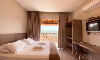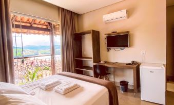 Olha, não tive uma boa experiência, no momento da reserva as informações não sao claras e achamos que todos os quartos eram iguais (com varanda) e no checkin percebemos o engano e já informamos o atendente, e mencionou que qualquer alteração deveria ser feita diretamente com o Booking e que o quarto que queríamos só teria disponibilidade no dia seguinte. ligando lá, tive a informação que já teriam ligado para a pousada que precisaríamos combinar valores direto com a recepção e nossa mudança seria feita, ao falar novamente com o atendente o mesmo só ficava repetindo que qualquer alteração só é feita com o Booking e não fez MESMO HAVENDO QUARTO DISPONÍVEL E NOS DISPONDO A PAGAR A DIFERENÇA. Sem contar que o secador estava quebrado e no momento da limpeza não foi reposto papel higiênico e ficamos sem no último dia de hospedagem, ah e esquecemos um pacote de salgadinho vazio na bancada ao lado da cama e quando voltamos estava no mesmo lugar, ou seja a limpeza não foi feita corretamente. Os funcionários não são simpáticos, no café da manhã foi servido as frutas cortadas com casca ex melão, e o mamão com casca e sementes. Enfim, infelizmente tinha tudo para ser uma estadia incrível, mas infelizmente foi bem abaixo da expectativa. Ainda bem que Capitólio é lindo e não deixou nada a desejar