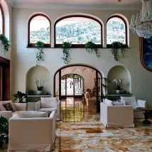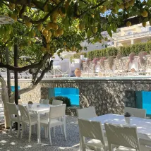 酒店的位置很好,距離翁貝託一世廣場很近,一路上都是名牌專賣店,就是卡普里島最著名的五星級酒店隔壁。酒店的房間雖然不大,但設施齊全,竟然有一個游泳池和檸檬樹下的酒吧。酒店的大堂很大很漂亮,工作人員態度也很好。自助早餐中規中矩。三月中旬的價格實在是便宜,單人間衹要每晚九百多人民幣,據説夏天旺季房價要漲到5千人民幣。