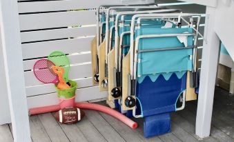 On the ground level, immerse yourself in a haven of relaxation – a full bathroom with a walk-in shower and double queen beds awaits, perfect for larger families or extra guests. This space is your cocoon of tranquility and convenience.