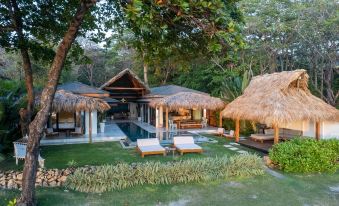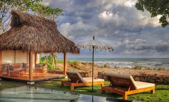 Casa Milya is a 4 bedroom luxury villa right on the beach, the perfect Costa Rica vacation destination! Centrally located in Santa Teresa, Costa Rica, it is the perfect place to spend your vacation. Step out of the villa and walk right onto the beach. Casa Milya has 4 Master Bedrooms, each one with a king-sized bed and en-suite bathroom. Each bedroom opens up to the pool. The large kitchen and living area opens up to the beach. There is place to sit and eat in the kitchen or outside, on the patio. The yoga deck and BBQ are outside on the lawn.
