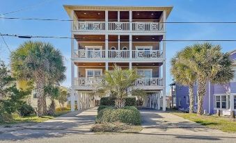 There are six covered porches with access from every floor to both the ocean view and the canal view! The elevator services all 4 floors, from the carport to the top floor. This elevator is provided as a convenience. Full size wheel chairs do not fit easily, and not recommended. There is a security camera in the elevator interior cab.