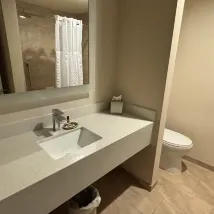 We had reserved a King Bed room and a Double Room, but the front desk claimed there were no other available rooms and assigned us both to the second-floor atrium area, outside the fire doors—one directly facing the stairs and the other directly facing the elevator. From our rooms, we could hear everything from the front desk and the lobby music playing loudly all night.