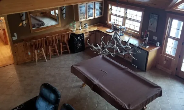 6 Bedrooms, 3 1/2 Bathrooms, beautiful fireplace, Great Entertainment room with pool Table, Kegerator, bar seats, Home theater recliner chairs, Loft area, Dinning area with bigelow views, very open living area , Large entry mudroom, deck area, Hot Tub, WiFi, it is serviced by the ski shuttle.