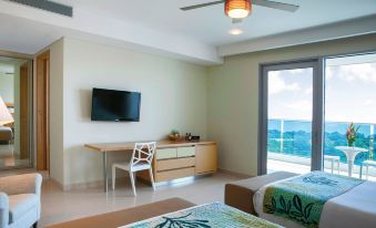 The room is absolutely beautiful, junior suite, the staff needs a lot of work. Plus everything inside of the hotel is extremely expensive for the quality of food they offer. Breakfast was the best part, but do not recommend lunch buffet. Our first day room service did not get to our room until almost 5 pm and didn't even clean the whole place. They were walking in without even knocking which one time they entered and I was laying down with my partner. The pool, bar and gym were all beautiful. The view is amazing. Its a mix emotion. Everyone is kind.