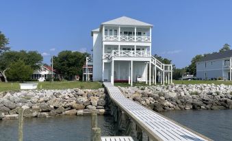 Welcome to Aqua Vista, a beautifully appointed four-bedroom, three-and-a-half-bathroom retreat nestled on the tranquil shores of The Core Sound in the quiet fishing village of Atlantic, North Carolina. Located in the southernmost part of the Outer Banks, this hidden gem offers a rare blend of modern coastal elegance and untouched natural beauty.