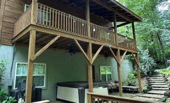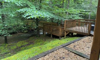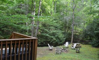 Enjoy Franklin, NC, our favorite vacation destination! Situated in the heart of the Smoky Mountains, Franklin and surrounding area is perfect for discovering Hiking trails, nearby White Water Rafting, river Tubing, and so much more. For a wonderful vacation, there's no need to leave this lovely mountain cabin directly on Jones Creek. Relax on your deck of choice and listen to the Creek while savoring the cool mountain freshness. Fish for trout, play in the Creek just outside your door, and enjoy our 6 Person Hot Tub on a cool Mountain evening. Gather at the Fire Pit or Picnic area.