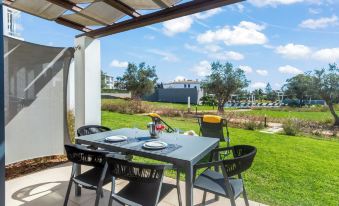 Beautiful, boutique style self-catering accommodation in an immaculately kept, private gated complex. Eva (?) at "Reception" gave us a very warm welcome on arrival (07/05/24), along with details of where to eat & food shop locally. Both Eva & her colleague (sorry I didn't get the gentleman's name) were always happy to answer any queries we had & were the perfect hosts. We stayed in a 2 bed duplex house, which was extremely well equipped & spacious for our family of four. Excellent design layout & high standard of finish throughout. Very comfortable beds, blackout curtains, spotless bathrooms, large TV, safe, laundry facilities, clothes drying rack, patio furniture, air conditioning, mosquito/fly netted sliding doors to cover patio door openings, wine fridge, coffee machine, etc. Our accommodation was cleaned every 2nd day. The lady always did a very thorough job & left our house shinning each time. Thank you! The heated, saltwater pool was beautiful & never busy when we used it, with plenty of sun loungers available. A rental car is needed for this location & to explore the surrounding towns & stunning beaches. We could not fault "Quinta Do Algarvio Village" and give it a 10/10!