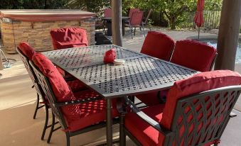 INDOOR LIVING - - There is a large dining area indoors which can seat up to 8 comfortably, a breakfast bar in the kitchen with seating for 3, luxurious power recliners in the main seating area and large flat screen smart TV, a good wifi connection is available so you can stream your favorite games and TV shows. Download speed: up to 1,200 Mbps, Upload speed: up to 35 Mbps.