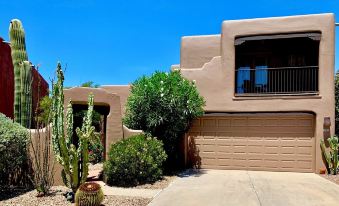 The Main ensuite bedroom has a comfortable King size bed, and a balcony with beautiful views of the Catalina Mountains. The ensuite bathroom fully embraces the character of the southwest and has twin sinks and a luxurious deluge shower with horizontal jets and a handheld shower attachment. The main bedroom has a luxurious King bed, the two guest bedrooms have comfortable queen size beds. The house comfortably sleep 6 people, and there are also additional sleeping arrangements as described below. .