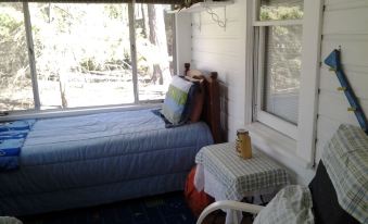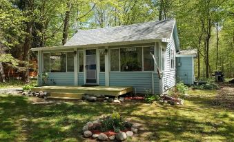 Little Blue is a family friendly cottage with a fully equipped kitchen and dishwasher. The cottage has 2 bedrooms with 1 queen size bed in one and a full size bed in the other. 1pullout sofa queen bed in the living room offers additional sleeping space. The enclosed screen porch has a twin bed for napping or leisurely reading. The dining room accommodates 6 with additional dining space on the back deck.