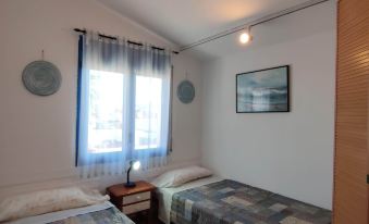 In 1º floor and composed of a dining room and kitchen equipped with refrigerator, microwave, freezer, dishwasher, coffee elect., Toaster, kettle. 2 bedrooms (2x1pers. And 1 x 2 Pers.), Complete and spacious bathroom.
