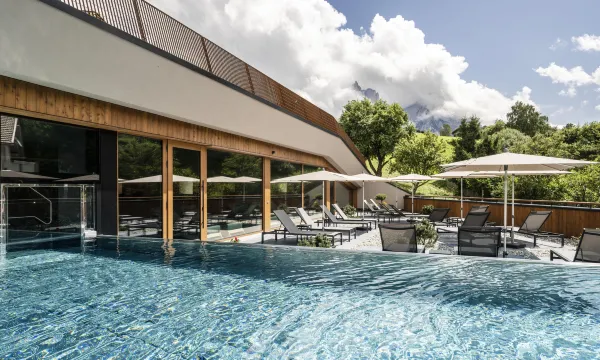 Bereits die Architektur des Hauses hat uns beim Ankommen sehr begeistert. Ein sehr herzliches Willkommen und Begrüßen hat das ganze abgerundet. Das Hotel ist sehr modern gestaltet, hat aber einen gewissen gemütlichen urigen Charme nicht verloren. Sehr tolle Zimmer und eine tolle Aussicht auf die umliegende Umgebung. Das Haus liegt ruhig aber dennoch ist in Kürze das Zentrum zu erreichen. Die Haltestelle für den Bus ist in unmittelbarer Nähe. Perfekte Lage und Verbindung zum Skifahren, Wandern, etc. Ein vielfältiges Antipasti- und Salatbuffet, eine hervorragende Menüauswahl mit sehr kreativen Gerichten und genialen Vorspeisen ließen keine Wünsche offen. Absolut gehobenes Niveau. Das Serviceteam zu jeder Zeit freundlich, zuvorkommend und beratend. Und jederzeit gut drauf :-). Top. Hier passt die Kombination aus Wohlfühlen, Aktiv sein, Entspannen und Ruhe haben, genießen nahezu perfekt.
