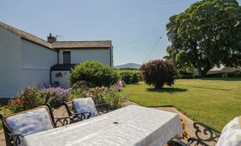 The property is self-contained, within an annexe of the main farmhouse. The entranceway comprises a private pathway, through a private garden and patio area, towards a large porch area with front door entrance. The porch offers plenty of room for storing walking boots and outdoor clothes. Entering through the front door, you will arrive in an open plan living room and kitchen area, with patio doors providing a view towards further gardens. Within the high quality fitted kitchen, there is a fridge, microwave/oven, dishwasher, coffee machine, kettle and toaster. The kitchen also hosts a breakfast bar area, for sitting and enjoying a meal together.