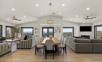 Spacious Living Areas: The open-concept living space features large windows that fill the home with natural light. Comfortable seating and a cozy fireplace create the perfect ambiance for relaxation and gatherings.