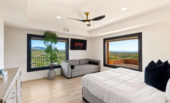 Guest Bedroom #4 features 1 King Bed, 1 pull out sofa sleeper, 55 in TV, a large closet and access to balcony with unobstructed mountain and city views