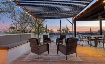 Heated Pool and Spa: Dive into the sparkling heated pool or unwind in the adjacent spa while soaking in the panoramic views of the Catalina Mountains. The pool area is surrounded by lounge chairs for sunbathing and a shaded patio for those seeking a break from the sun.
