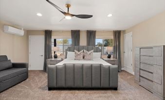 - Spacious Living Area: The expansive open-concept living area is designed for relaxation and socializing. With large windows that frame stunning views, this space is filled with natural light. Enjoy cozy evenings by the fireplace or movie nights on the oversized sectional sofa, complete with a large flat-screen TV.