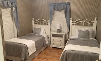 The house initially sports two bedrooms upstairs that fit for 4 people total. In addition, the rec room downstairs, has 2 futon couch beds and another large sofa that can accommodate 4 guests. There are also additional full/queen air mattresses and a regular queen mattress that can accommodate 6 additional guests.About pets:No pets allowed.About checkOut:Check out before 11:00 AM.About children:Children allowed: ages 0-17.About checkIn:Check in after 3:00 PM.About smoking:Smoking is not permitted.About minBookingAge:Minimum age to rent: 18.About events:No events allowed.
