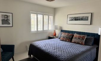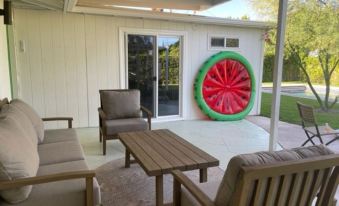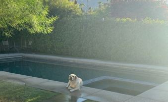 The master bedroom has a new king bed and an ensuite bathroom with a shower and an entrance to the pool area. The front bedroom has a new queen bed. The third bedroom/den has a giant sofa lounge with an entrance to the backyard. The second bathroom has a tub and shower. There are four smart TVs in the home and the third bedroom/den may also be used as an office. The WIFI is fast (test avg is 472 MPS). Minimum 30-night stay. We do accept dogs, but not cats.About pets:Pets allowed: dogs (limit 2 total).Pet friendly and ok to swim in the pool..About checkOut:Check out before 11:00 AM.About children:Children allowed: ages 0-17.About checkIn:Check in after 4:00 PM.About smoking:Smoking is not permitted.About minBookingAge:Minimum age to rent: 25.About events:No events allowed.
