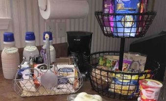 This lovely suite is just waiting for you! Traveling with a small child? A pack & play, walker, umbrella stroller and toys are also available for your use. Other items available to make your stay more enjoyable are a smart tv, DVDs & dvd machine, puzzles, and games. A picnic basket and lawn chairs are available upon request. We will do our best to accommodate your needs. Also, if you are celebrating a special occasion, contact us about adding on a flower arrangement, small cake, box of chocolates and/or a bottle of sparkling grape juice for an additional charge.