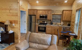 Beautiful trees and nature surround this inviting log sided cabin. Enjoy a full kitchen and Mini Split Heat and AC with added heat and ambience from an electric holographic fireplace bring convenience and comfort. There is a washer and dryer in the bathroom area. There is room to park a boat on the lot. Walk out the back door to a private deck or look out the window in the rear, to see Beaver Lake and Sylvan Shores/Havenwood cove. Enjoy a propane fire pit and swings with lake view after walking down several stone steps on the property. With a short drive through Sylvan Shores you will find a public launch and at the end of Mundell Rd. at Starkey Marina you may also launch or rent boats, picnic and hike in the parks around the lake, just 2 miles farther on Mundell Rd. There may be day use fees associated with Corp of Engineer Parks and Recreation Areas. A 15 min drive will take you to Eureka Springs and many area restaurants and shops. Your health and safety are a priority with local volunteer fire and EMTs just minutes away. The owners' home is just steps away from this separate living space.About pets:No pets allowed.About checkOut:Check out before 11:00 AM.About children:Adults only.About customRules:No candles or open flames inside the cabin. With no paid damage protection, a credit card and driver’s license will be required at check-in..About checkIn:Check in after 3:00 PM.About smoking:Smoking is not permitted.About minBookingAge:Minimum age to rent: 21.About events:No events allowed.