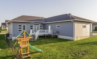 This is a bright, roomy and modern style house. Set in a quiet Center Point neighborhood. Just off of interstate 380, with a 30 minute drive to Cedar Rapids, Vinton, Shellsberg, Palo or Independence, & 45 minutes to Waterloo/Cedar Falls. With 5 bedrooms, 3 bathrooms and 2 living rooms, pool table, full kitchen, backyard, deck and fenced in yard. Each bedroom has a different type of mattress, this allows guests to choose the room they feel the bed matches their sleeping preferences. We have a meeting room that can be used for sewing, (including a cutting table, design wall, & pressing station) scrap booking, or crafting with friends or family. Also good for small retreats or study groups. Backyard deck has cushioned wicker set, and grill for outdoor entertaining. There is also a hi chair, pack-n-play, and book, toy & game closet for use. We have a NO animals allowed policy, and a NO smoking/vaping inside buildings policy. Contractor reservations need prior approval with host.About pets:No pets allowed.About checkOut:Check out before 11:00 AM.About children:Children allowed: ages 0-17.About customRules:Pleas shut off TV projector in basement when not in use, and do not move it or change anything on the receiver. There is no gaming allowed on TV ‘s..This is a NO animals allowed property-noncompliance will result in $2000 extra fee. No smoking/vaping on property- non compliance is a $2000 extra fee,No overnight sleeping on couches or recliners. Please don’t move furniture- there is cords that can get disconnected..About checkIn:Check in after 3:00 PM.About smoking:Smoking is not permitted.About minBookingAge:Minimum age to rent: 21.About events:No events allowed.